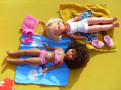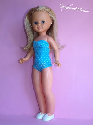 Y la segunda una foto veraniega de Nancy, cuyo premio sería este bañador para dicha muñeca y que también he realizado con todo cariño, al igual que el anterior conjunto